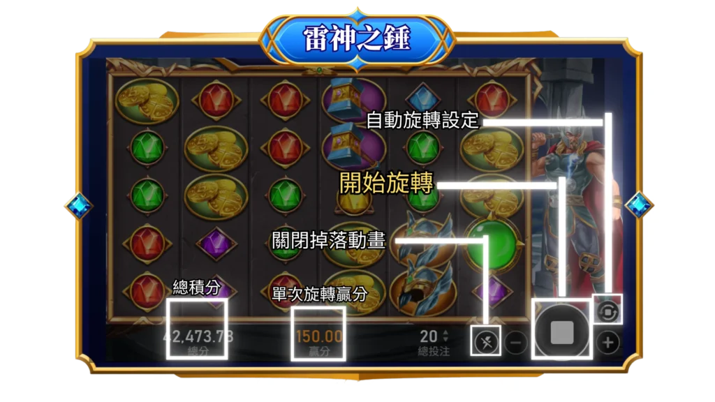 非常適合!操作簡單直觀的雷神之錘以掉落消除的方式積分,所以玩家不需根據賠付線去進行複雜的計算,只需判斷符號掉落的數量以及是否為相鄰的輪轉即可。